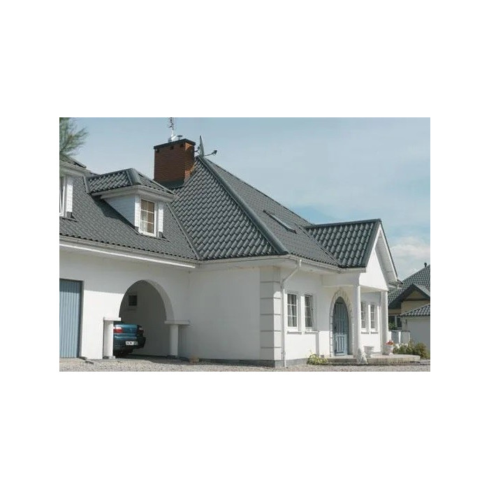 Металлочерепица Ruukki Elite Pur Matt изготавливается методом горячего оцинкования. За основу берутся стальные листы стандартной толщины 0,5 мм, которые в процессе специальной обработки приобретают дополнительную прочность и жесткость. Это делает их стойкими к воздействию большинства негативных факторов среды, включая осадки, солнечные лучи, ветровые нагрузки. Матовое полимерное покрытие создает красивый эффект на поверхности, визуально подчеркивает эстетику кровли. Толщина защитного слоя составляет 50 мкр, этого достаточно, чтобы защитить профили от царапин и механических повреждений. К неоспоримым преимуществам серии относится то, что металлочерепица Ruukki Elite Pur Matt имеет гарантированный производителем срок эксплуатации, достигающий 25 лет.