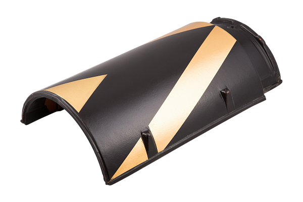 Черепица изготовлена из керамики, что обеспечивает ее долговечность и устойчивость к различным погодным условиям. Алмазно-черный цвет с золотой полосой придает крыше роскошный вид и подходит для различных архитектурных стилей.