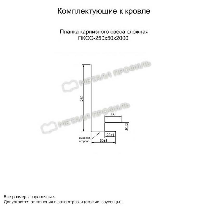 Планка карнизного свеса сложная 250х50х2000 (VikingMP E-20-7024-0.5)