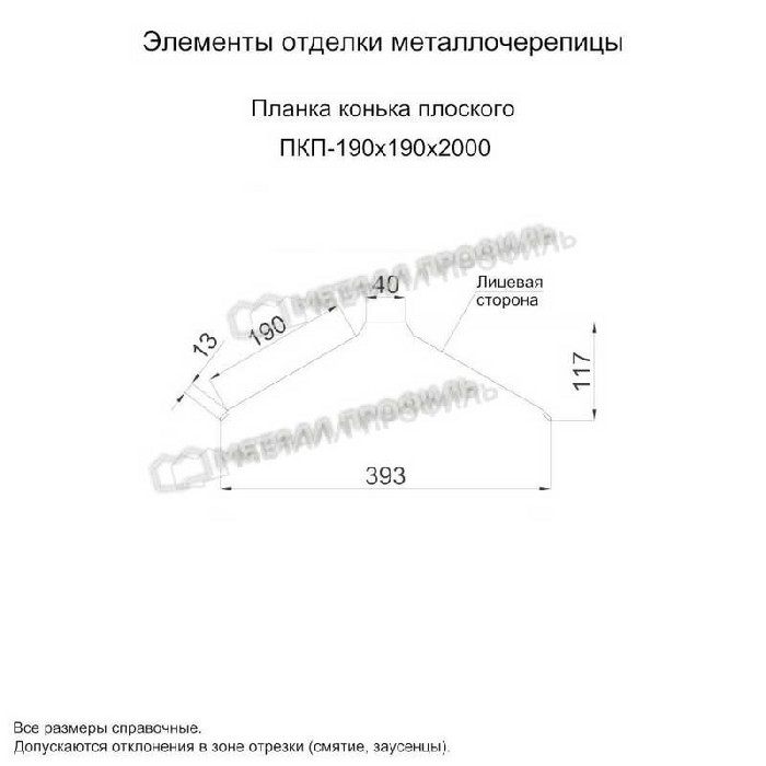 Планка конька плоского 190х190х2000 (ПЭ-01-6002-0.45)