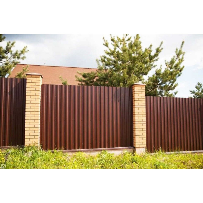 Полиэстеровое покрытие RAL 8017 Коричневый шоколад придает профлисту эстетичный внешний вид и защищает его от повреждений. Это позволяет использовать его как наружную отделку зданий, так и для создания крыш и заборов.