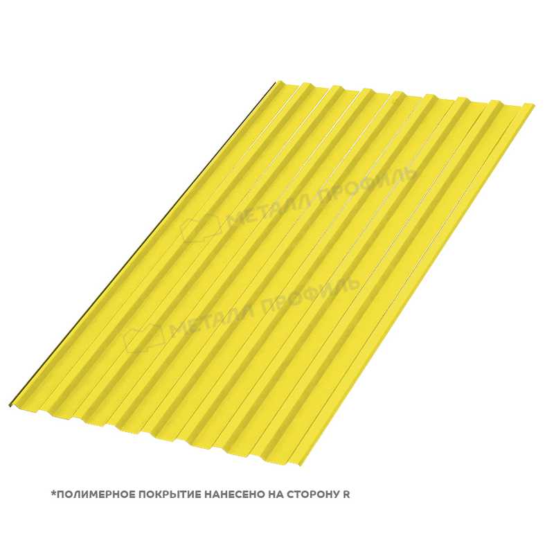 Профлист Металл-Профиль МП-20 Полиэстер 0.45 мм RAL 1018 Желтый цинк применяется для обшивки крыш, фасадов зданий, заборов, а также для создания кровельных конструкций. Он легко монтируется и имеет высокую степень герметичности, что обеспечивает надежную защиту от влаги и ветра.