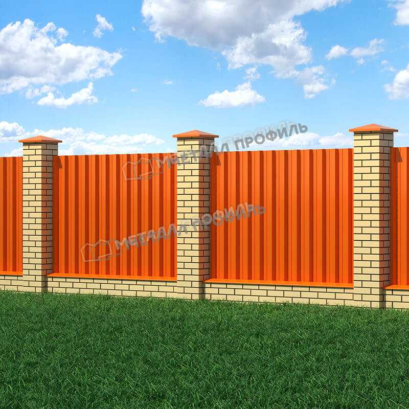 Цвет профлиста - RAL 2004 Чистый оранжевый, который придает ему стильный и яркий внешний вид. Этот цвет отлично сочетается с различными фасадами и создает эффектный дизайн.