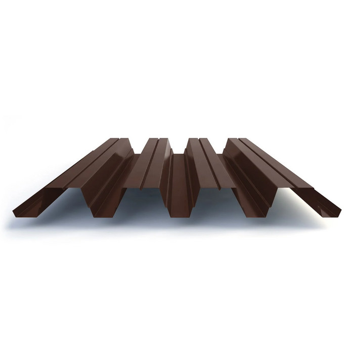 Профнастил ЮджинСтрой Н75 с покрытием из полиэстера толщиной 0,7 мм в цвете Ral 8017 шоколад - это надежный и долговечный материал для кровли и обшивки зданий.